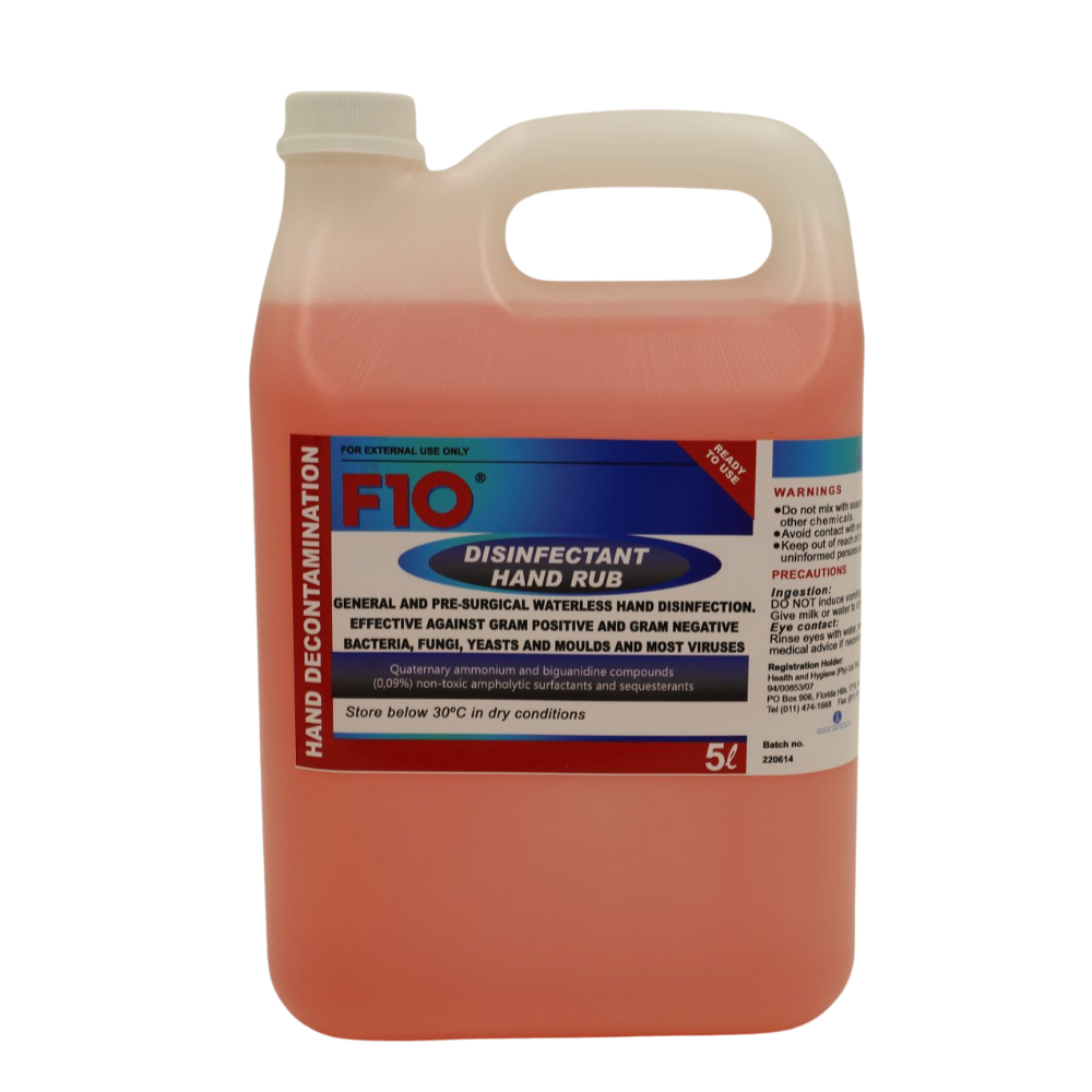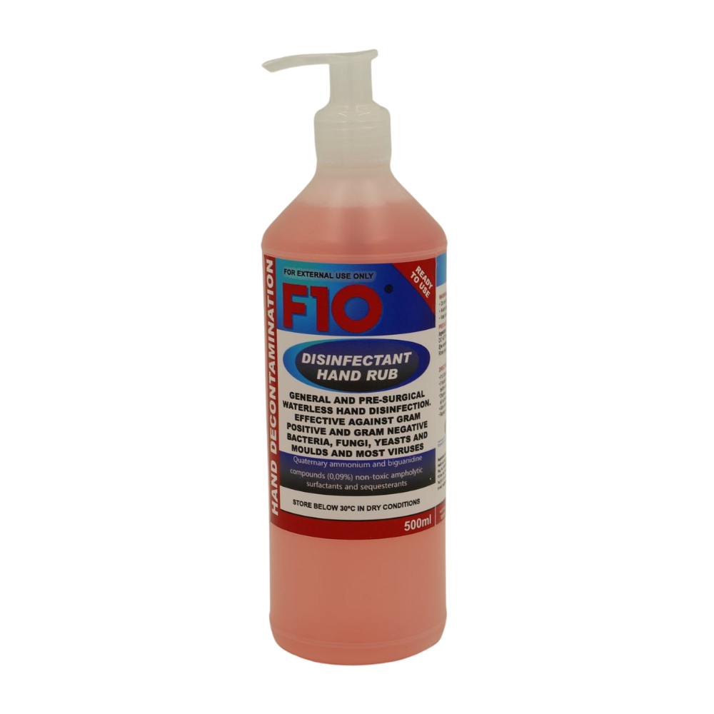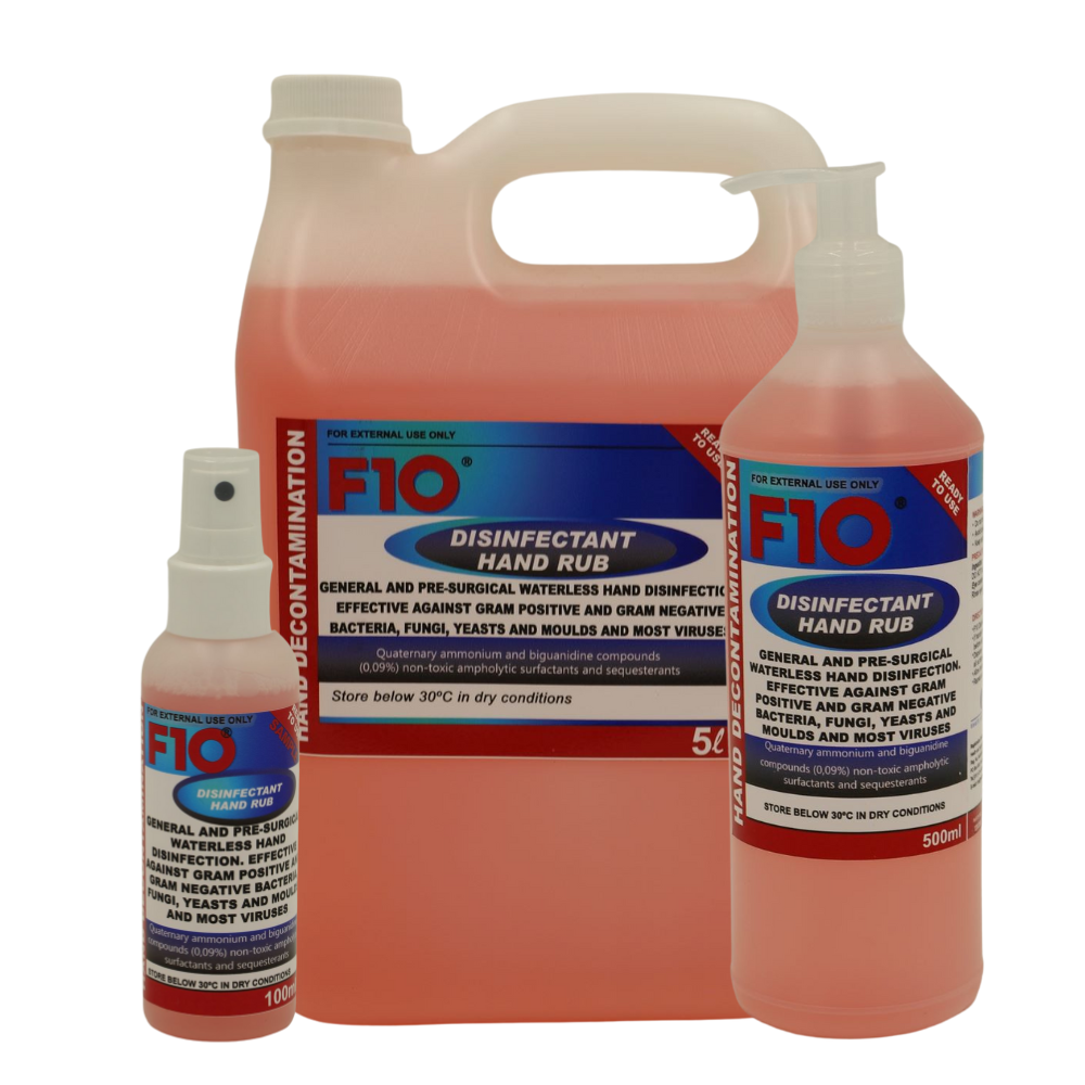 F10 Hand Rub is one of the alcohol-free alternatives in F10’s hand waterless sanitizer range. Once again featuring F10’s quick kill times, this quick drying and fresh smelling product is ideal for almost any occasion. The zero alcohol content is excellent for those that suffer from skin irritation from exposure to alcohol based products, particularly over a long period of repeated use.